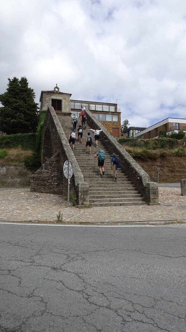 Für uns ging es nun erstmal gute 500 hm hinauf, bevor wir etwa 8 km bis nach Portomarin hinunterfuhren. Hier kreuzte der Pilgerweg mehrfach die Straße. Man sah jetzt nicht mehr so viele Pilger, bzw. die Strecke verlief auch etwas abseits