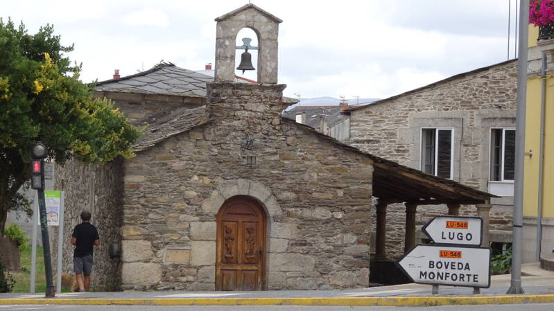 Wir fuhren an der eigentlichen Stadt vorbei, zur Kirche hätten wir nochmals einige Höhenmeter hinauf fahren müssen. Portomarin liegt am gleichnamigen Stausee und wurde, als dieser genehmigt wurde, auf höheres Terrain umgesiedelt. Die Kirche wurde Stein für Stein abgebaut und an der jetzigen Stelle wieder aufgebaut.