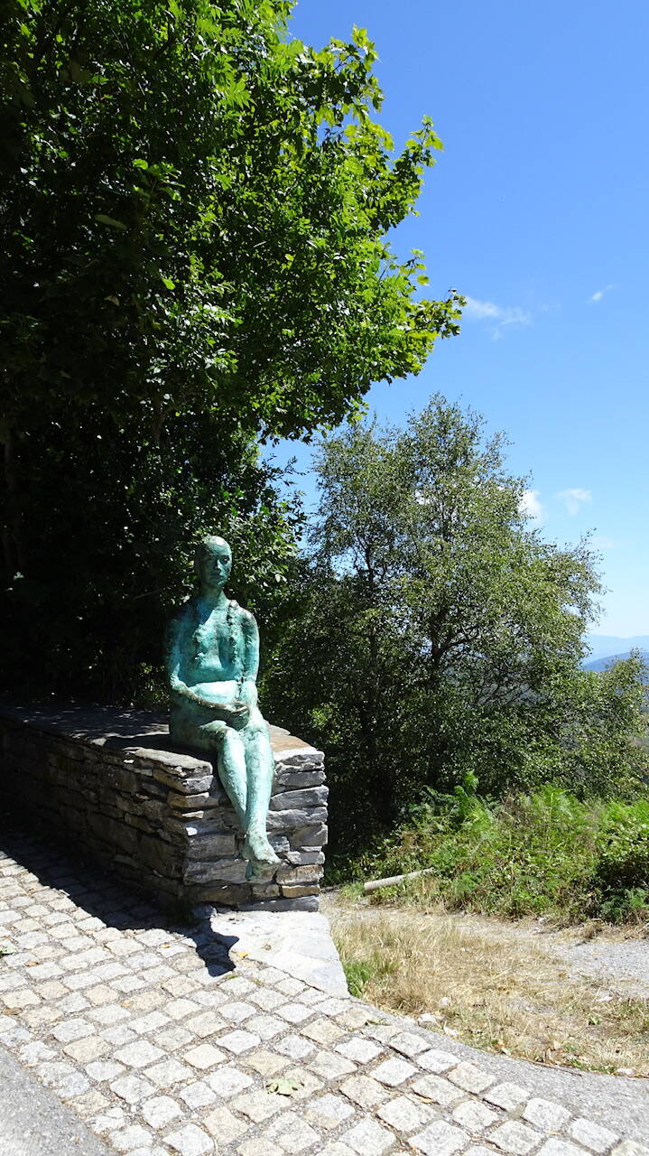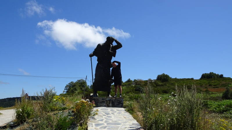 Nach dem Puerto El Poyo ging es wieder über 200 hm hinunter um anschließend hinauf zum Alto San Roque auf 1270 hm, wo am Straßenrand eine markante Pilgerstatue steht.