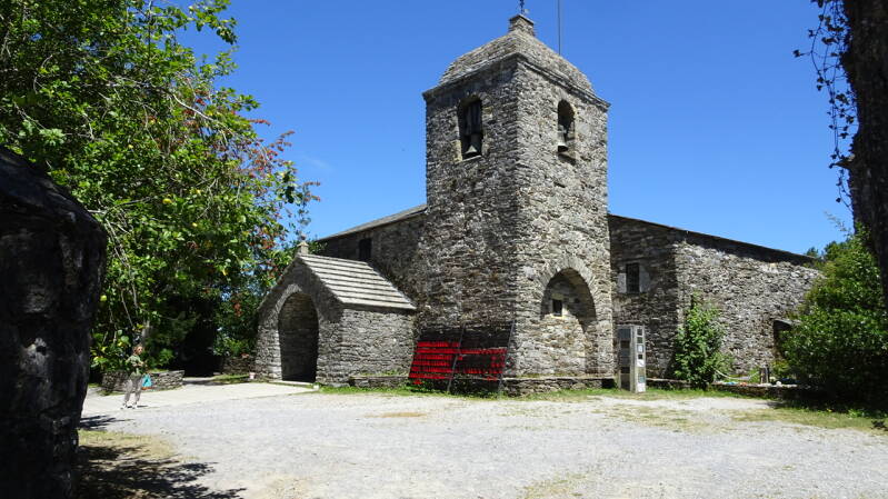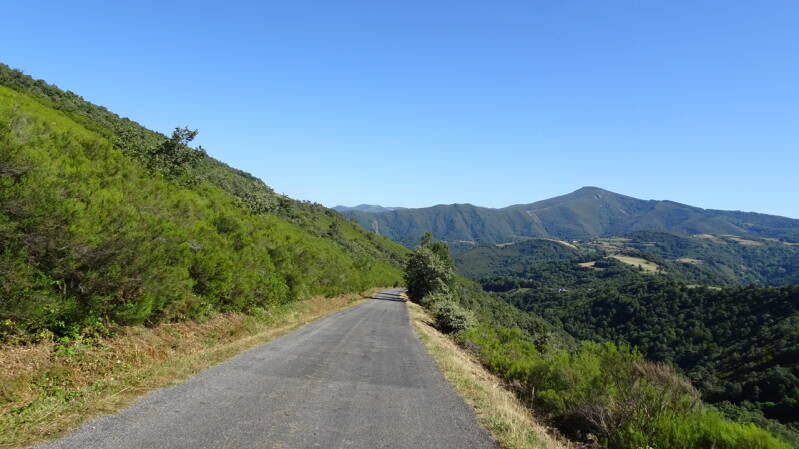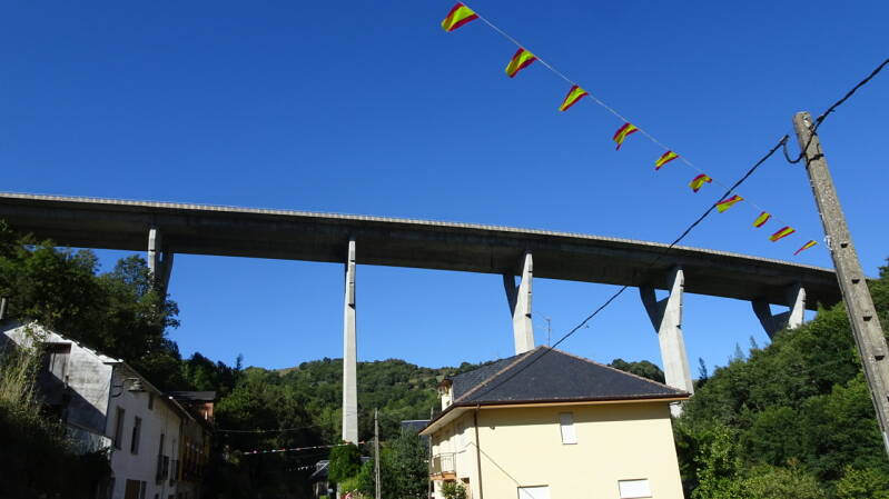 Wir sind viele Kilometer neben dem Pilgerweg unterwegs, bis dieser von der Landstraße abzweigt und für uns unbefahrbar wird. Wir bleiben auf der Landstraße und wir kommen durch viele kleine Bergdörfchen, mit ein paar Häusern, teilweise schön renoviert aber auch viel Verfall. Wir sehen nur ein paar alte Menschen, die einsam an der Straße entlang gehen und uns sehr freundlich zuwinken und zurufen. Es scheint, Sie haben endlich ein wenig Abwechslung am heutigen Tag. Auch den vielen Hunden, die den Besitz ihrer Menschen bewachen, wird es ähnlich ergehen. Wir haben eine neue Taktik, immer wenn sie zu kläffen beginnen, hupt Evelin mit ihrer Ballhupe, was die Hunde kurz und abrupt verstummen läßt, bevor das Konzert dann umso heftiger weitergeht.