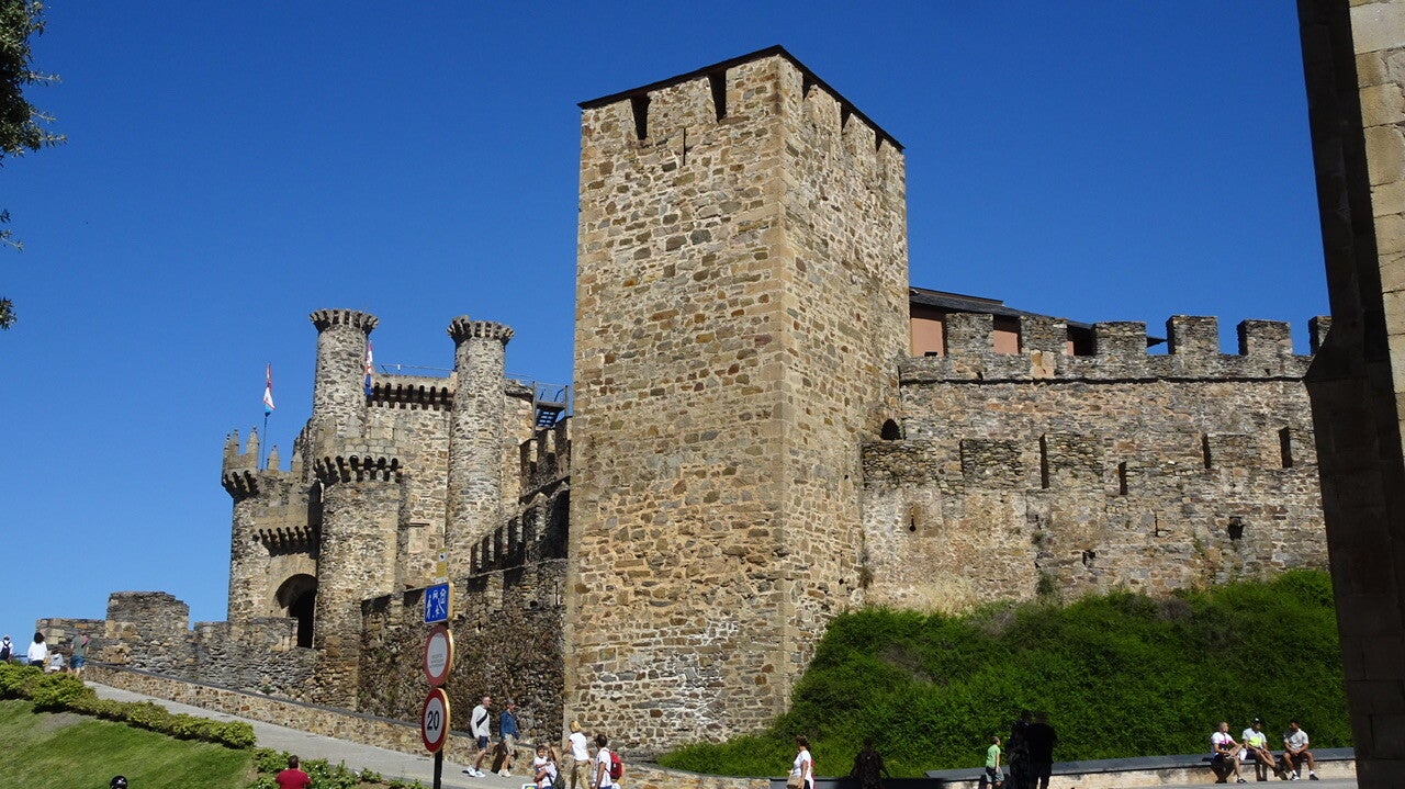 Danach ging es in starkem Verkehr direkt zur Templerburg. Da war die Hölle los, Touristen und Pilger in Massen. Ich parkte auf dem Gehweg und Evelin ging in die Fußgängerzone um zu Fotografieren und Stempel für unsere Pilgerpässe zu organisieren.