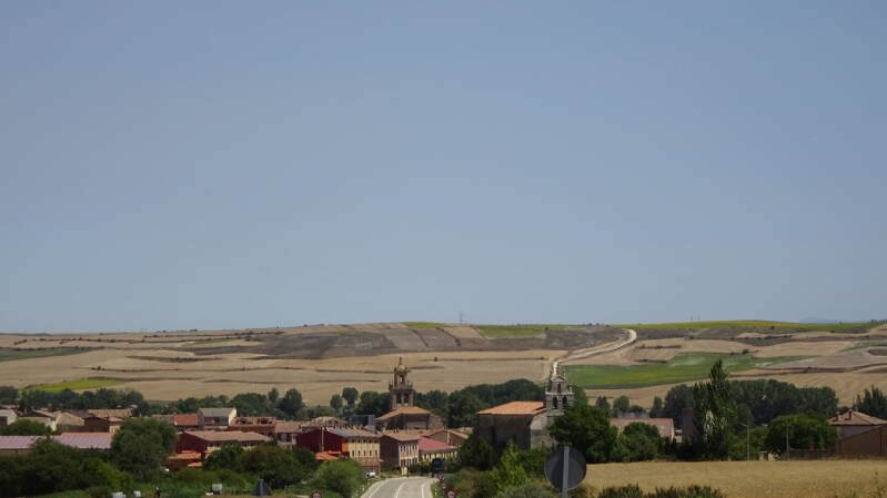 Nach einer weiteren Stunde erreichen wir Castrojeriz, das an einem imposanten Tafelberg liegt. Wir machen dort Mittag und verpflegen uns in einem kleinen Supermarkt.