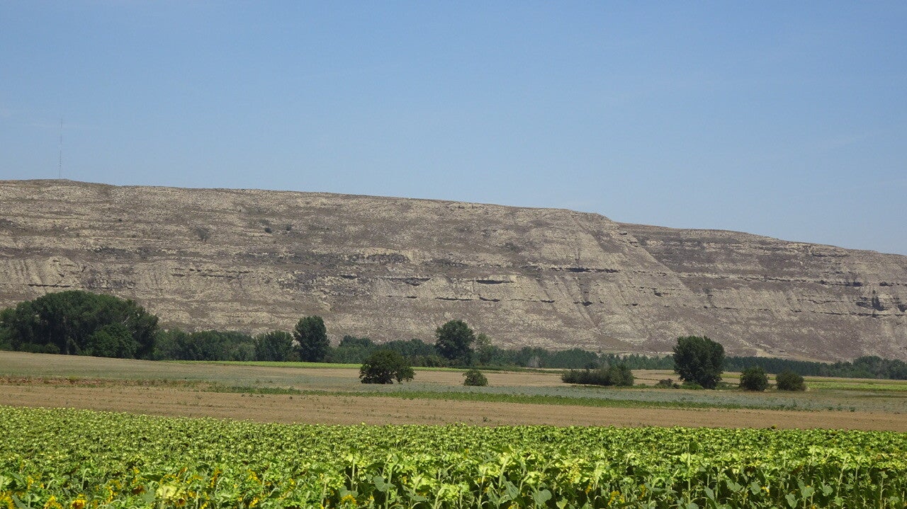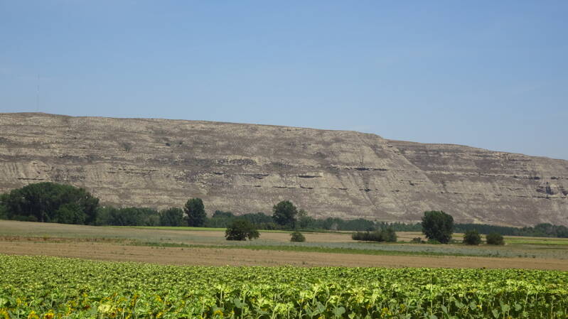Landschaftlich ist es heute unglaublich reizvoll. Wir fahren auf der Sierra de Atapuerca einer fast 1000 m hohen Hochebene. Intensiv Landwirtschaftlich genutzt, wobei überwiegend Sonnenblumen angebaut werden. Da scheinen die Spanier vielleicht doch ein gutes Gespür für Geschäfte zu haben, wenn der Hauptlieferant auf unabsehbare Zeit ausfällt.