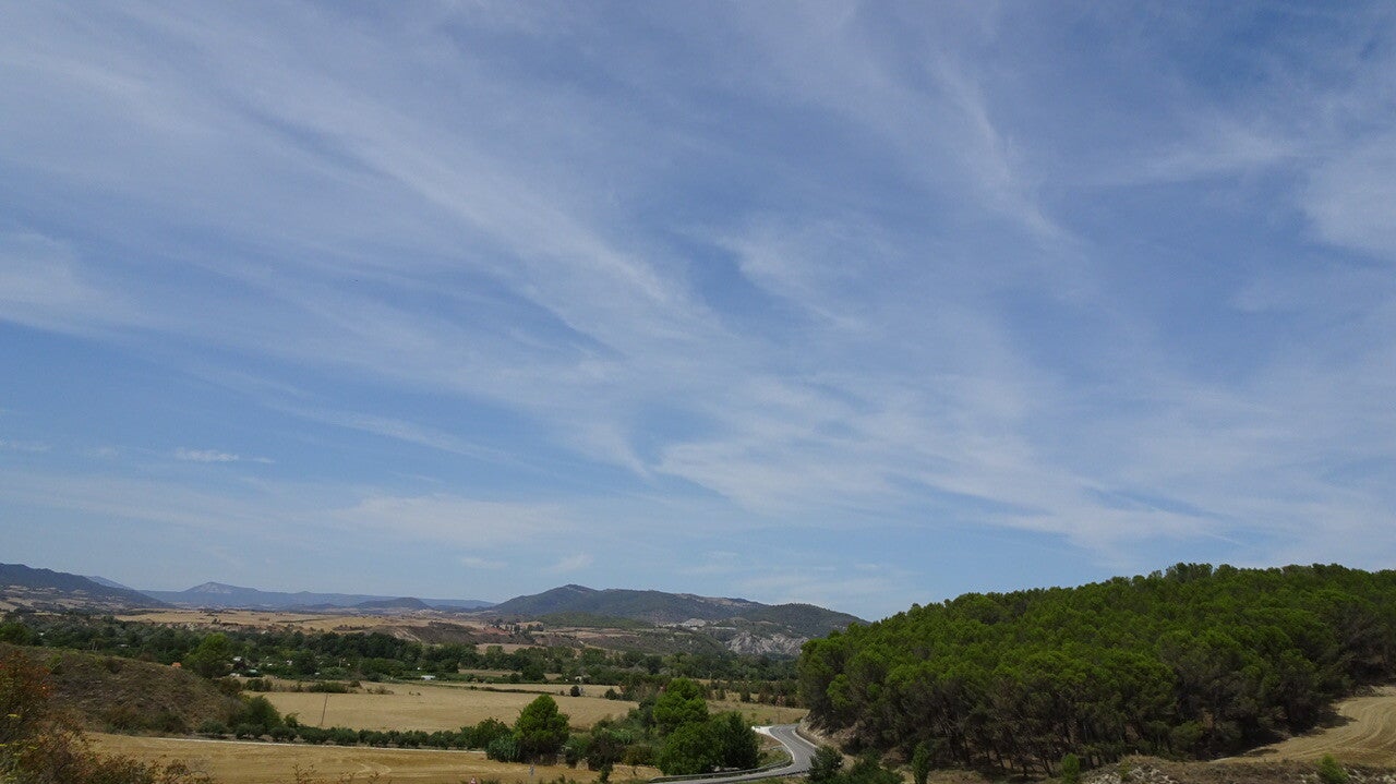 Irgendwann finde ich aus der Stadt hinaus und wir machen uns auf die letzten Kilometer nach Puente la Reina. Noch einmal ein langer Anstieg mit grandiosen Ausblicken ins Tal.