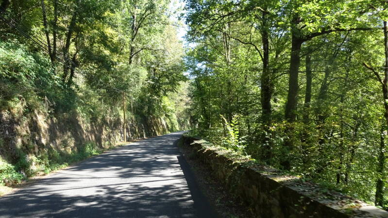 Wir fuhren häufig im Wald und dadurch im Schatten, uralte Bäume, dann wieder nackte Felswände und Dörfer, bei denen man meint, die Zeit wäre vor ein paar Jahrhunderten stehen geblieben.