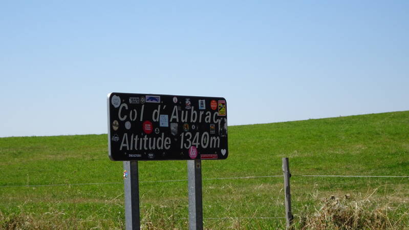Nach knappen 23 km haben wir den Col d‘Aubrac mit sein 1340 msl geschafft. Bis hierhin waren es gute 1000 hm, fehlen noch 340 bis zum Ziel.