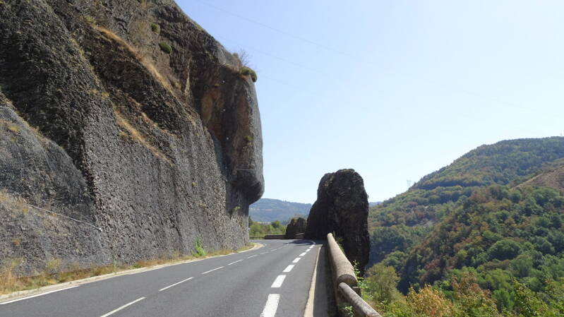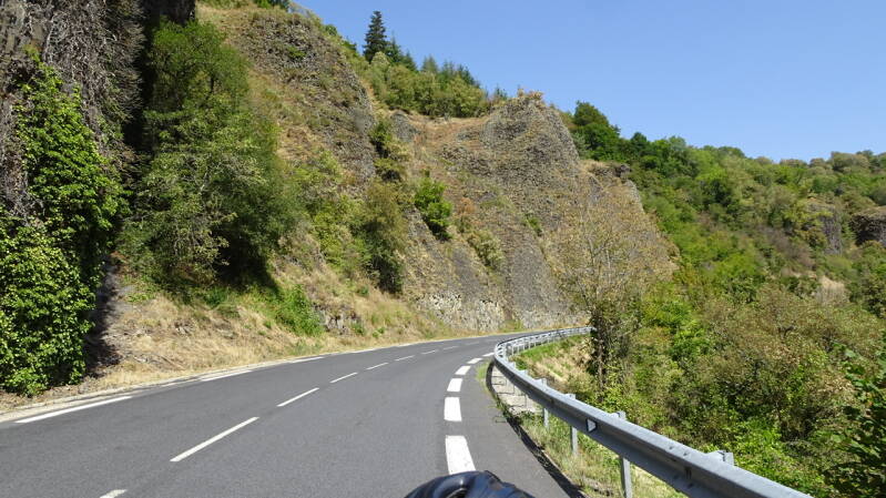 Landschaftlich war die Auffahrt ebenso ein Traum wie die vorherige Abfahrt. Überall die Tuffsteinklippen, wo heiße Magma aufgestiegen und abgekühlt ist, wie in Le Puy wo Kirchen und Figuren auf solchen Türmen errichtet wurden. Überall,allerdings die Gefahr von Steinschlag und kleinere Steine lagen auch überall herum.
