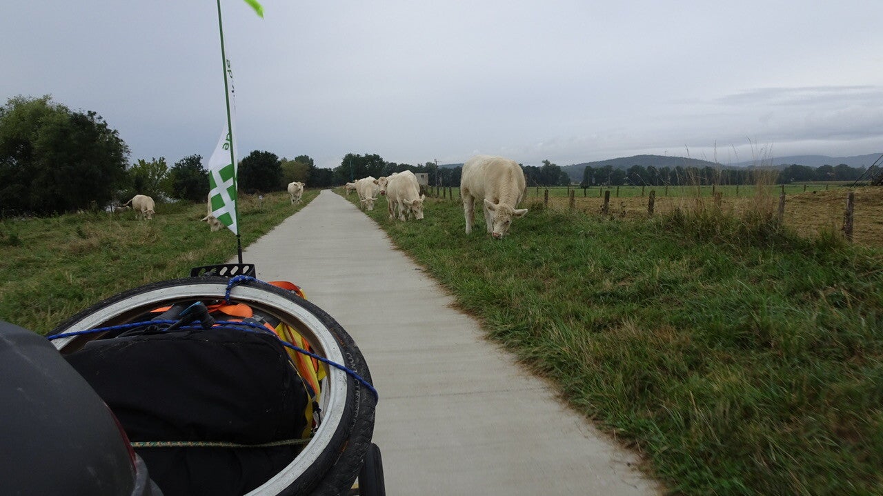 Es ging weiter in relativer Entfernung von der Saône und es wurde richtig kalt. Deshalb zogen wir unsere Regenjacken über. Die Radwegbeschilderung war gut, wich aber manchmal von den Navigationsdaten der Voie Bleue ab, was dann immer abenteuerlich wurde.