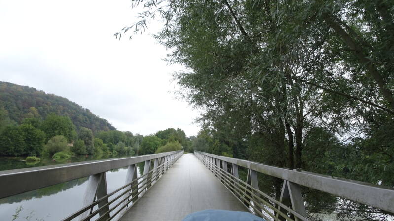 Schnell erreichten wir Montbeliard, von der Stadt sahen wir allerdings wenig, da der Eurovelo mehr oder weniger an der City vorbeiführt. Wir hatten auch, bei diesem Schmuddelwetter, keine Lust auf Sightseeing. Zumal der Wetterbericht noch ein paar ergiebige Regenfälle in Petto hatte.