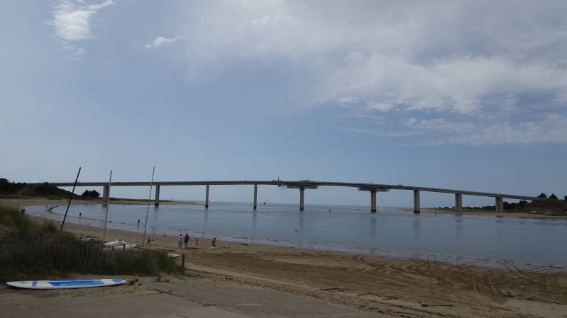 In der geschilderten Landschaft fuhren wir rund 60 km bis La Barre de Monts. Dort nutzten wir die Einkaufsmöglichkeiten in einem großen Supermarkt. Dort wurden wir von einem Schweizer Paar angesprochen und wir unterhielten uns über die geplante Tour und unser Equipment. Insbesondere das Tandem hatte es den beiden angetan und sie wollten alle Details wissen.