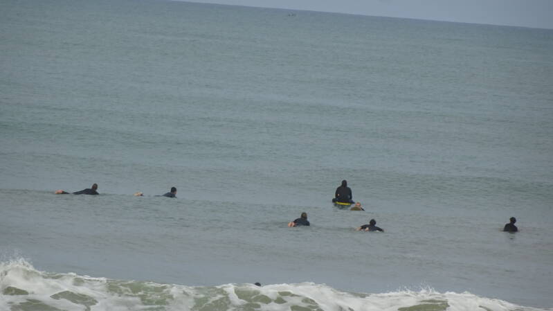 In Montavilet kamen wir kurz an den Strand und konnten einige Wellenreiter oder Surfer beobachten, die dort viersuchten die Welle zu reiten.