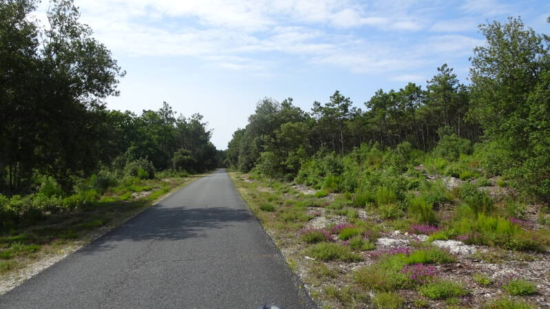 Den ganzen Vormittag über war es bewölkt aber angenehm warm. Vom Campingplatz weg ging es über verschiedene Radwege durch Pinienwälder und ja, jetzt zirpten die Zikaden. Überall um uns herum ein Ohrenbeteubendes Konzert. - Herrlich.