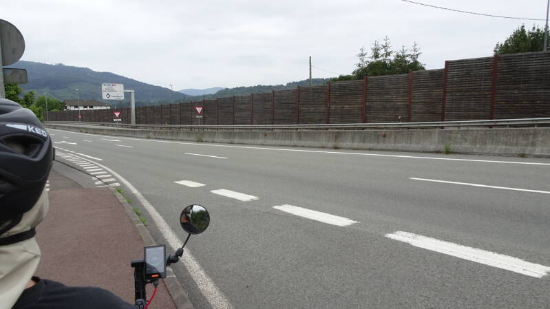 Die folgende Abfahrt war dann echt toll, bis wir dann auf die N 635 geleitet wurden. Ja, es gab da zwar kein Verbot für Fahrräder, aber auch keinen richtigen Seitenstreifen und jede Menge LKW. Nach ein paar Kilometern wurde die N 635 vierspurig und rechts begann ein Radweg. Die Navigatoren wollte aber unbedingt auf der Nationalstraße bleiben und durch einen Tunnel, der explizit für Radler gesperrt war. Sind wir natürlich nicht durchgefahren, wir sind auf dem Radweg, über den Berg - puh - der nicht eingeplant war.