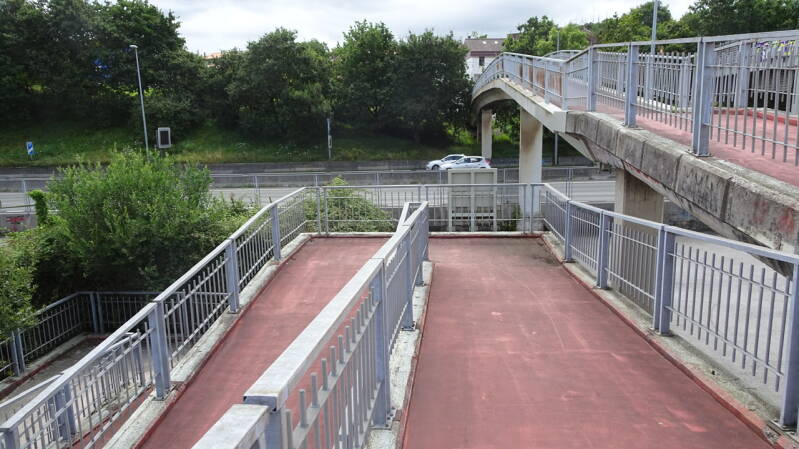 Ja und dann, hatte Sie uns endlich im Sack. Der Navigation vertrauend, da sogar Santander beschildert war, standen wir plötzlich vor einer Fußgängerbrücke, über die wir drüber sollten. Keine andere Möglichkeit in Sicht. Ich sage noch, mal schauen, ob die uns von der Brücke lassen. Drauf ging’s problemlos, ja und dann waren wir auf der anderen Seite und es ging in insgesamt 6 Kehren nach unten. Bitte auf der Zunge zergehen lassen, 6 Kehren. Also, den Anhänger abgehängt und das Tandem an jeder Kehre hinten umgesetzt und den Anhänger nachgeführt. Das war Schwerstarbeit. Aber dennoch gut gelaunt ging es weiter, bis Sie wieder unbedingt auf die Autobahn wollte - ja, bevor jemand fragt, wir hatten Fahrradnavigation eingestellt. Vor der Auffahrt im Kreisverkehr abgedreht und auf dem Parkplatz eines Supermarktes, mit sehr eigenwilliger Verkehrsführung gelandet, nicht weit neben einem tollen Radweg in die richtige Richtung. In Spanien ist es aber problematisch auf so einen Radweg zu kommen. Entweder du fährst am Beginn drauf und am Ende runter oder du kannst das vergessen. Zwischendrin ist nicht. Also gute 500 m über die Holperpiste zurück gefahren und auf den Radweg abgebogen. Mit zwei mal rangieren waren wir auch tatsächlich drauf. Und plötzlich war der Radweg gut genug. Es kam nochmal eine Fahrrad-/Fußgängerbrücke an deren Auffahrt wir rangieren mussten, die Abfahrt ging aber kreisförmig und vollkommen problemlos. - Geht doch und dann gab es einen nahezu durchgängigen Radweg bis zu unserem Ziel.