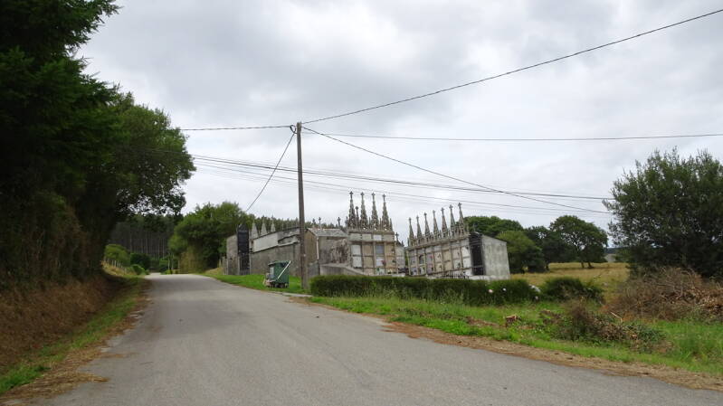Mondonedo liegt am Fuß einer 600 hm Steigung und da wäre es wirklich geschickt gewesen, zuvor noch die Akkus aufzuladen. Heute stehen insgesamt 1410 hm auf dem Tablett. Ein Akku ist bereits leer, der zweite bei 75%.