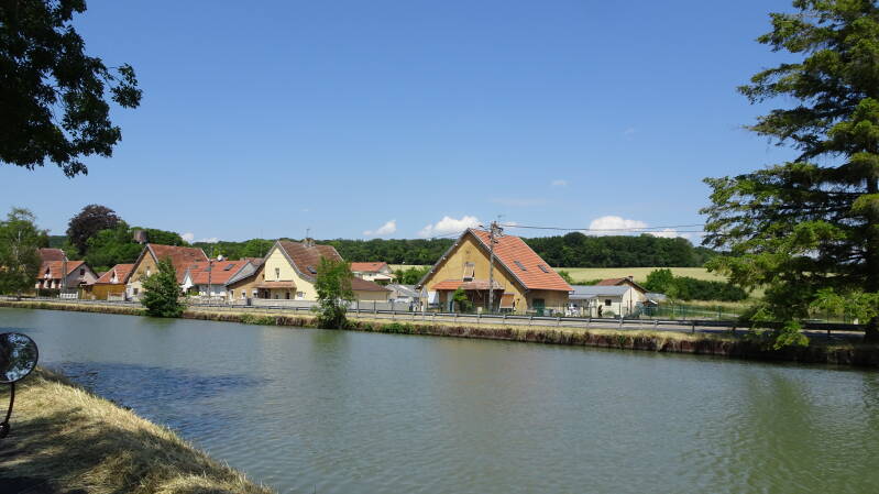 Erst als der Radweg am Kanal endete und wir zur Meurte querten lief es gar nicht gut. Wir strandeten an einer Fußgängerbrücke, die für Radler gesperrt und leider auch so blockiert war, dass man sie auch nicht verbotenerweise passieren konnte. - Tja, echt blöd gelaufen. Wir suchten nun nach einer Überfahrt über den Kanal und die Eisenbahnstrecke. Leider nichts gefunden. Der Maßstab unserer Karte zu groß, Google keine Hilfe. Erst ein Super netter Franzose konnte uns auf den richtigen Weg bringen. Der ganze Akt hat uns eine gute Stunde und runde 15 km Umweg gekostet und dabei wäre es so einfach gewesen, wenn wir an der gesperrten Brücke nur 500 m weitergefahren wären, dann… Nicht immer ist also Google schuld, oft liegt es auch am eigenen Unvermögen, sich auch die Richtungsschilder für Autofahrer anzuschauen.