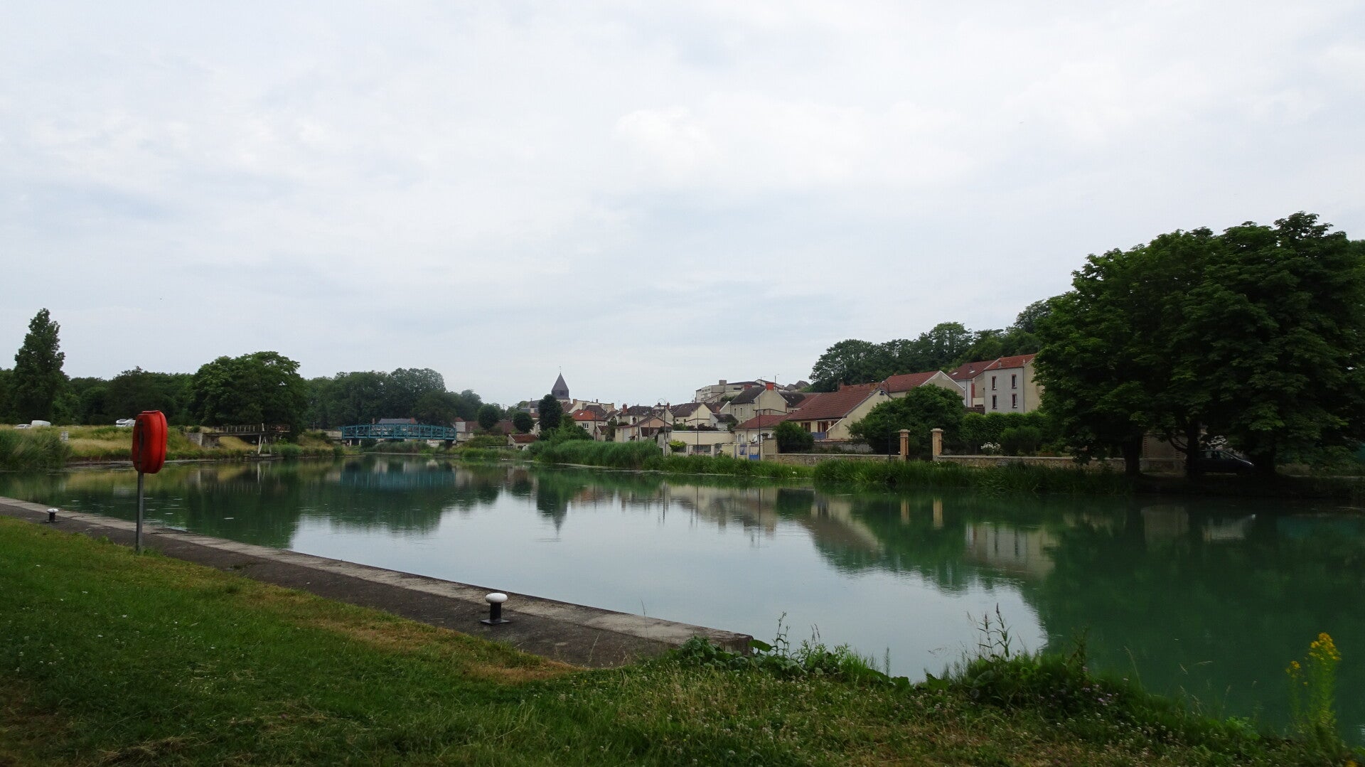 Heute ging es fasten den ganzen Tag an der Marne, auf einem recht guten Radweg, entlang. Es waren einige Schiffe auch Frachtschiffe unterwegs und das merkt man dann sofort im Unterhaltungszustand auch des Radweges. Die Marne hat in diesem Bereich eine sattgrüne Farbe und ist offensichtlich sehr Fischreich, zumindest säumten eine Unzahl von Anglern beide Ufer.