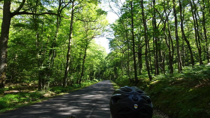 Nach 16 km hatten wir Conde sur Huisine auf einer wenig befahrenen aber ständig ansteigenden Landstraße erreicht, die beständig durch Wald führte.