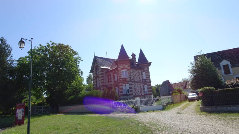 Der Radweg führte über eine Fußgängerbrücke, die auch breit genug für unser Gespann war. Allerdings war bei der Abfahrt von der Brücke ein Barrierenkonstrukt angebracht, welches es uns unmöglich machte die Brücke zu verlassen. Die Durchfahrtsbreite betrug ca. 80 cm, keine Chance für uns oder Räder mit Kinderanhänger oder für Zwillingskinderwagen, aber das hatten wir ja alles schon mal. Jetzt wissen wir aber auch, warum hier in der Gegend, bei Zwillingskinderwagen die Kinder hintereinander und nicht nebeneinander sitzen oder die Oma den zweiten Wagen schiebt. Man stellt sich allerdings schon die Frage, was müssen die Franzosen für Autos haben, dass solche Schikanen erforderlich sind, sind das vielleicht Stretchlimousinen, die in der Breite bis zu einem Meter geschrumpft und anschließend wieder aufgeblasen werden können? - Nun egal, wir mussten zurück oder das Konstrukt demontieren. Unsere Spezialschlüssel passen nicht. Akkuflex habe ich leider immer noch nicht, Eisensäge auch nicht und mein Werkzeug ist gut verpackt am Boden einer Packtasche. Also, Anhänger abhängen und zurückschieben. Bambuk zurückschieben und sich ständig die Pedale in die Hacken hauen lassen, dann alles wieder anhängen und überlegen, wie die Brücke zu umfahren ist, was gar nicht so einfach war. Auch die Erklärungsbersuche eines Einheimischen waren leider nicht hilfreich. Letztlich mussten wir wieder ganz zurückfahren, über eine Nationalstraße über den Fluß um dann über eine grottenschlechte Landstraße auf der anderen Seite der Brücke wieder zu unserer Tour zu kommen und dazu noch die ständig maulende Komoot-Navigatorin, weil es mal wieder nicht nach ihrem Kopf ging. - Tja, da kann die Laune schon mal unterirdisch werden.