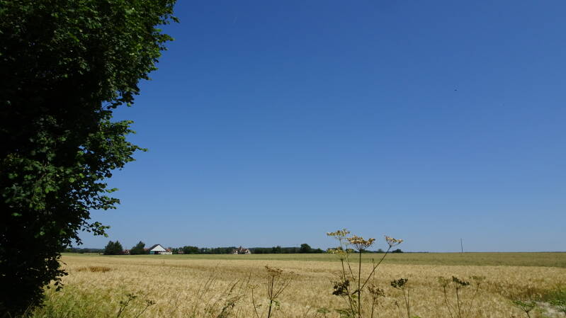 Wie üblich wurde nur abgeleitet. Nach 2 km noch ein Schild, welches nach rechts wies und dann verließen sie ihn. Und jetzt lieber Radler kuckst du nicht nur blöd, jetzt kannst du auch sehen wie du weiterkommst. Wir haben es tatsächlich geschafft nach Montagne zu kommen, aber da war dann die Einfahrt in den Ort ebenfalls komplett gesperrt und jetzt, haben wir noch blöder geschaut, zumal, es war high noon und die Sonne bratzelte vom Himmel, dass es eine wahre Freude war. Auf einer Landstraße dann wieder 2 km zurück, rein in den Ort und irgendwie zurück auf die Tour, was waren wir froh 😅 Ja und dann, wieder alles gesperrt, mann, jetzt reicht‘s langsam. Wir sahen gerade noch einen anderen Reiseradler auf einem ganz schmalen Weg verschwinden. Den Weg würde ich als Singletrack bezeichnen, und auch noch seitlich durch Pflanzen überwachsen. Eigentlich zu schmal für uns. Nach einigem Suchen fanden wir sogar ein Hinweiszeichen, allerdings war dieses mit einer Pappschachtel zugehängt, welches in den Pfad wies. Wenn wir da reinfahren und nicht durchkommen, „gehören wir der Katz“. Da ist nix mit umdrehen, dann muss alles rückwärts…