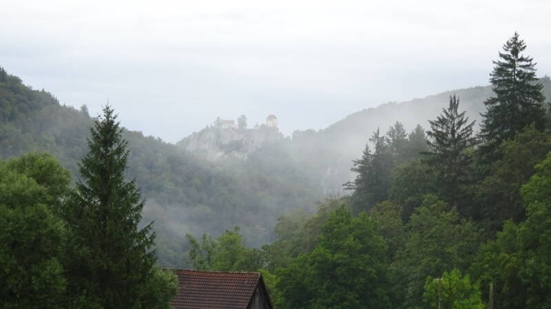 In der Nacht hatte es immer wieder geregnet und es war alles Naß und die Wolken hingen tief über dem Donautal.
