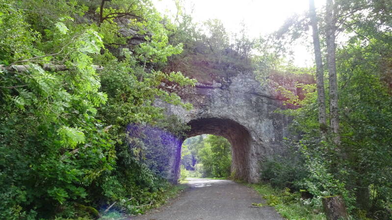 Über 20 km ging es in dem engen Tal bergauf und bergab. Wenn die Sonne scheinen würde und nicht so eine lange Strecke vor uns liegen würde, wäre es traumhaft gewesen. So war es einfach richtig anstrengend. Sehr viele Richtungswechsel und enge Brücken forderten uns zusätzlich. Die Qualität des Radweges war sehr unterschiedlich, teilweise extrem schlecht und manchmal hervorragend. Die Ausschilderung war aber nahezu perfekt.