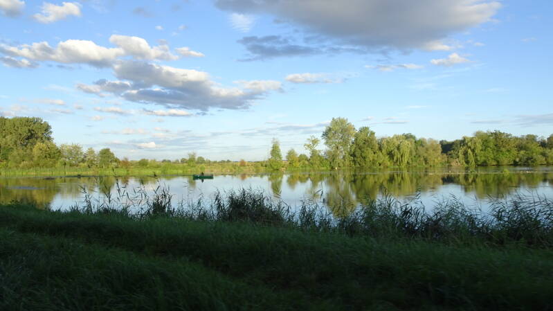 Um 15 Uhr fuhren wir weiter, wir wollten eigentlich die restlichen 100 km bis nach Hause durchfahren, da wir nicht mehr übernachten wollten aber die Akkukapazität würde dazu nicht reichen. Deshalb haben wir kurz vor Ehingen, an der Fischerhütte etwas gegessen und währenddessen eine Stunde die Akkus nachgeladen. An der Fischerhütte waren wir auch schon bei unserer Allgäu-Radreise eingekehrt. Der Wirt, der alleine war, machte uns trotzdem noch etwas zu essen, obwohl es bereits nach 17 Uhr war. So weit wir das heraushören konnten, hat er extreme Probleme Personal für die Gastronomie zu gewinnen.